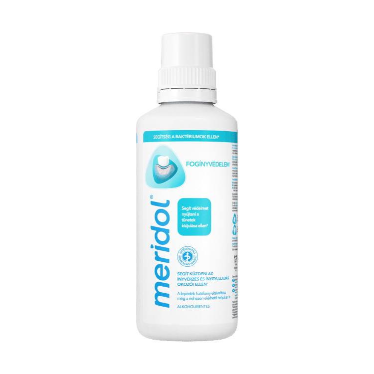 Véd: Öblögessen fogmosás után vagy fogmosások között baktériumok ellen védelmet nyújtó szájvízzel!
